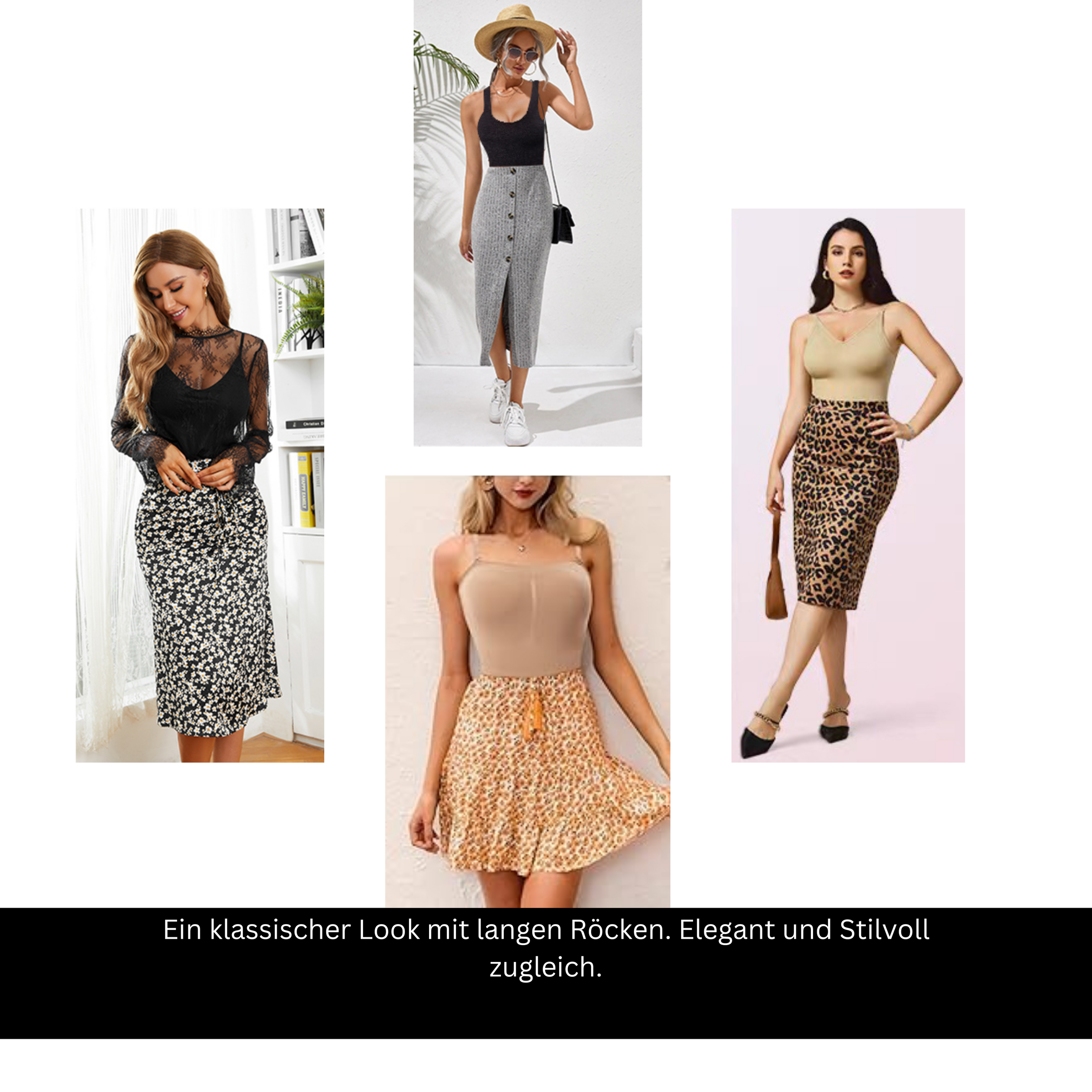 Ein schwarzer Body mit Beigem Rock ist eine super Komination - Stilvoll und elegant!